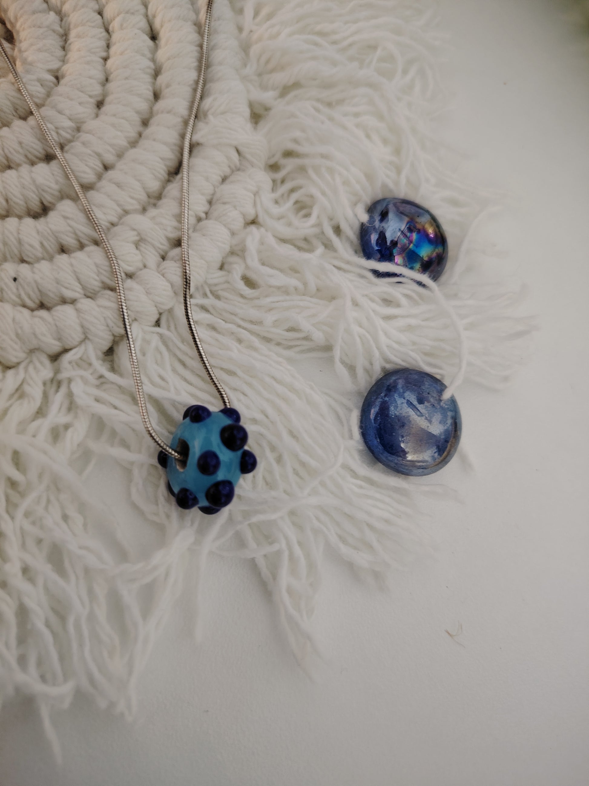 Dije trabajado en murano con tecnica Lampwork, con cadena de plata.