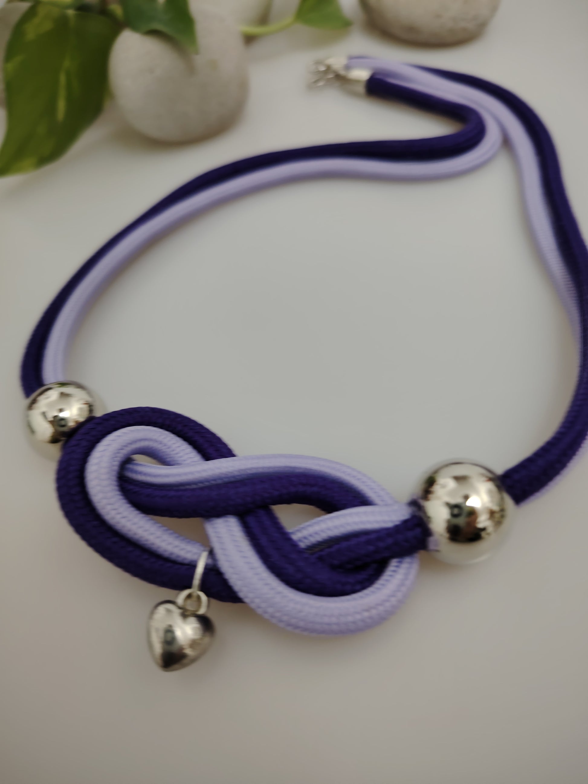 Collar de cordones,combinación de lilas, con accesorios de plata