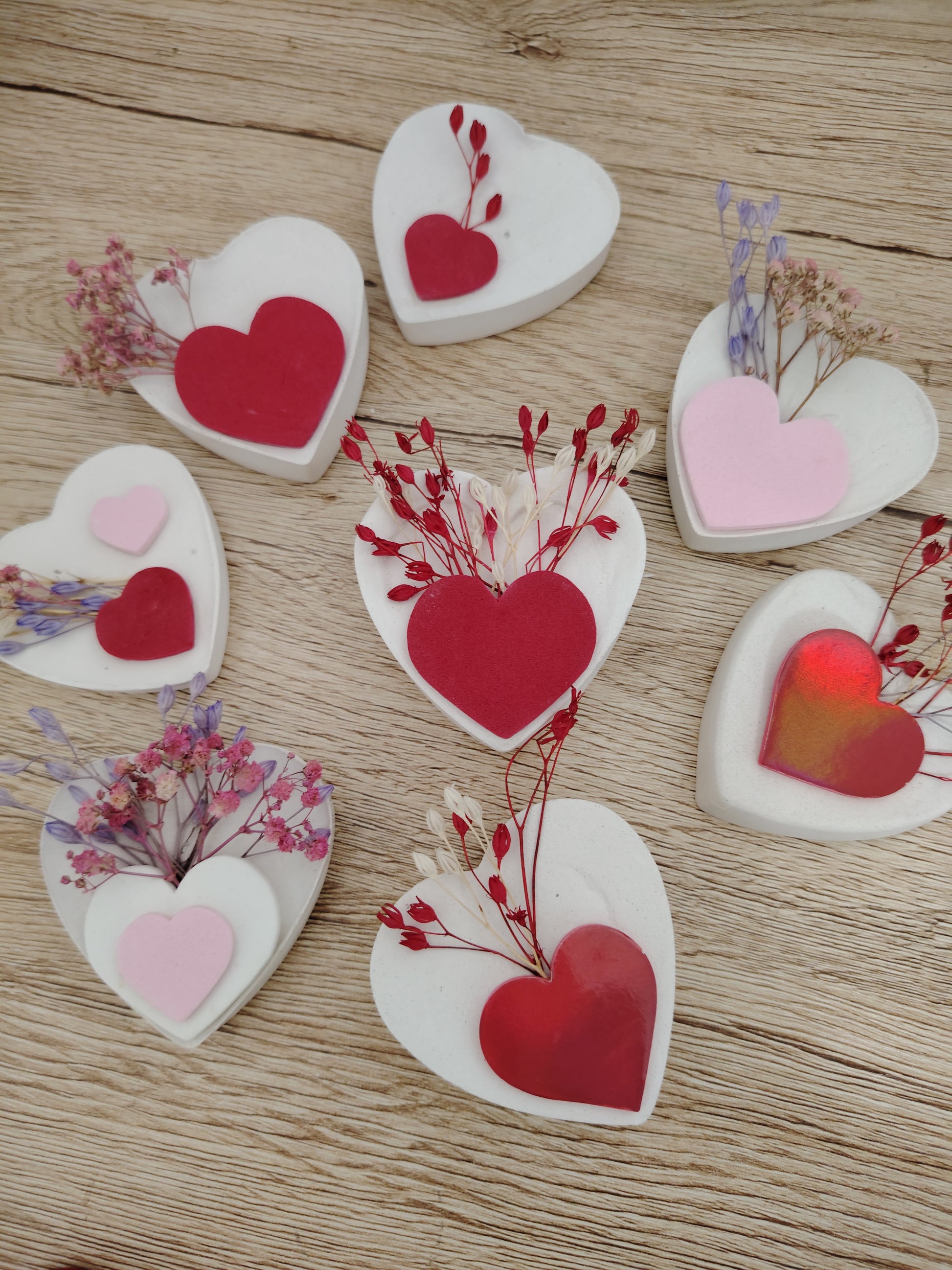 Corazones decorados con flores secas